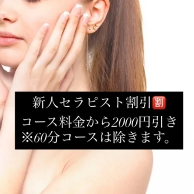 「今からすぐ行けます!」というお客様限定で通常料金から1000円引きでご案内致します! その時ご案内可能なセラピストがいなかった場合はご利用できませんのでご了承ください。 このクーポンはゲリラ的に出現しますので見つけた貴方はラッキー!? 時々チェックするのをお忘れなく♪ ※予約から30分以内でご来店可能なお客様のみご利用可能です。ご予約時にクーポン利用の旨をお伝えください。
