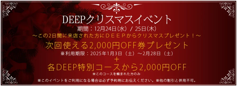 新人セラピスト【2,000円OFF】 さらに事前予約で【2,000円OFF】合計 【4,000円OFF】*ご予約時にお申し付けください*