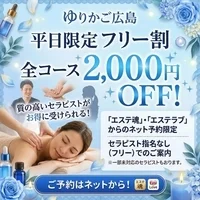 貴方が今日抱えている疲れは、明日への活力に変わるべきものです。 「ゆりかご広島」は、そのための通過点であり、最高のエネルギーチャージの場でありたいと願っています。 お客様がまた来たいと思える癒やしを