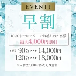 人気お試し90コースも16,000円〜と通いやすい料金設定でご提供。 早割やフリー割引適用で益々お得なチャンスも♪ 各種オプションはお好みでアレンジできます♡