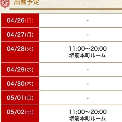 4/27(月)堺筋ルーム11時〜19時