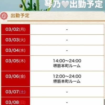 出勤情報や🈳時間情報、お礼などは
