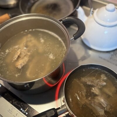 4時前に帰って…朝から鶏ガラと牛スジをしつこく煮込む🥘