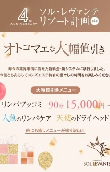 浜松メンズエステ|ソル・レヴァンテ 浜松 / マンション(個室) / 日本人