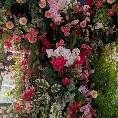 春のお花フェアで、あちこちにお花のオブジェやお花がいっぱいでほっこりしました🌸
