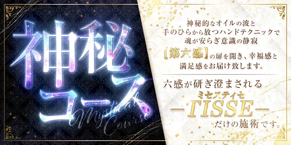まとわりつくオイルをゆっくり肌で包み込み 体温で温まったオイルの上を滑る施術は更に魂を刺激する最高級のコースです。 非日常的な貴方だけの大切な時間を ミセスティセでご堪能くださいませ〜