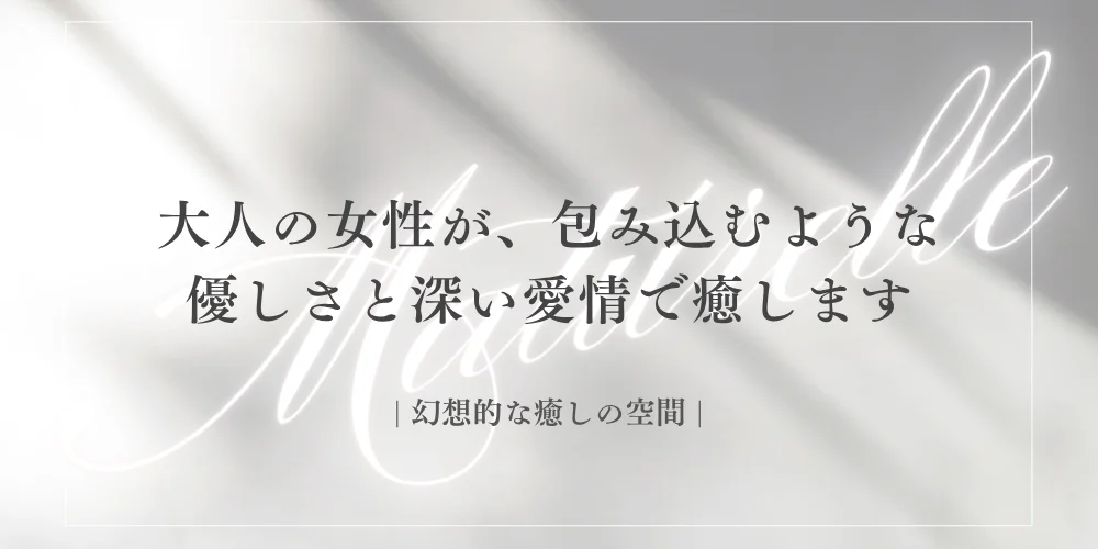 若い子では癒されない大人の男性へ。30〜50代の女性セラピストが、包み込むような優しさと温もりで、心と身体をゆっくりと解きほぐす極上の癒しをお届けします。