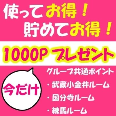 只今、ご新規様限定で初回利用時に通常ポイントとは別で1,000ポイントプレゼント!!