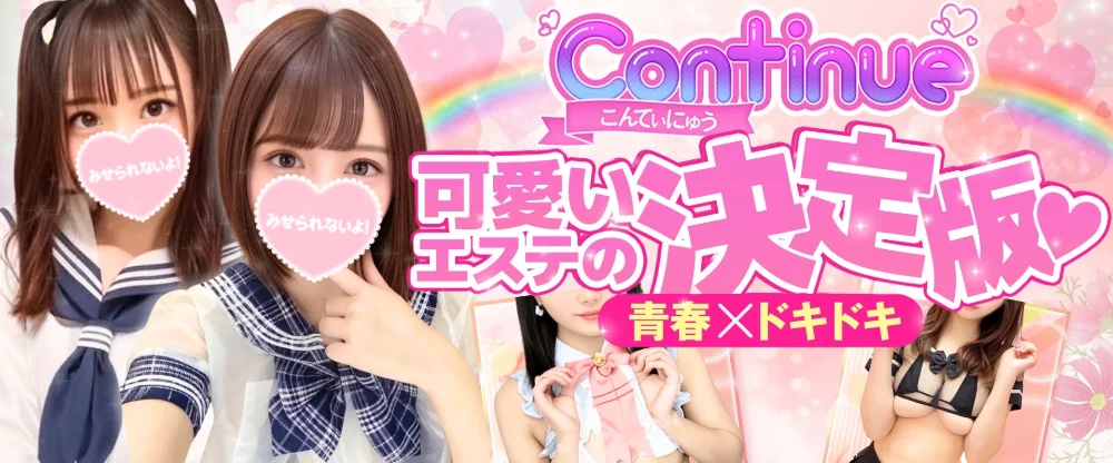 こんてぃにゅうは 全国初の青春×ドキドキを味わえる若い美女の柔肌密着専門店です。若いスベスベの柔肌と触れ合いの力を最大限に活かし 背徳感満載の昇天体験をお約束します。