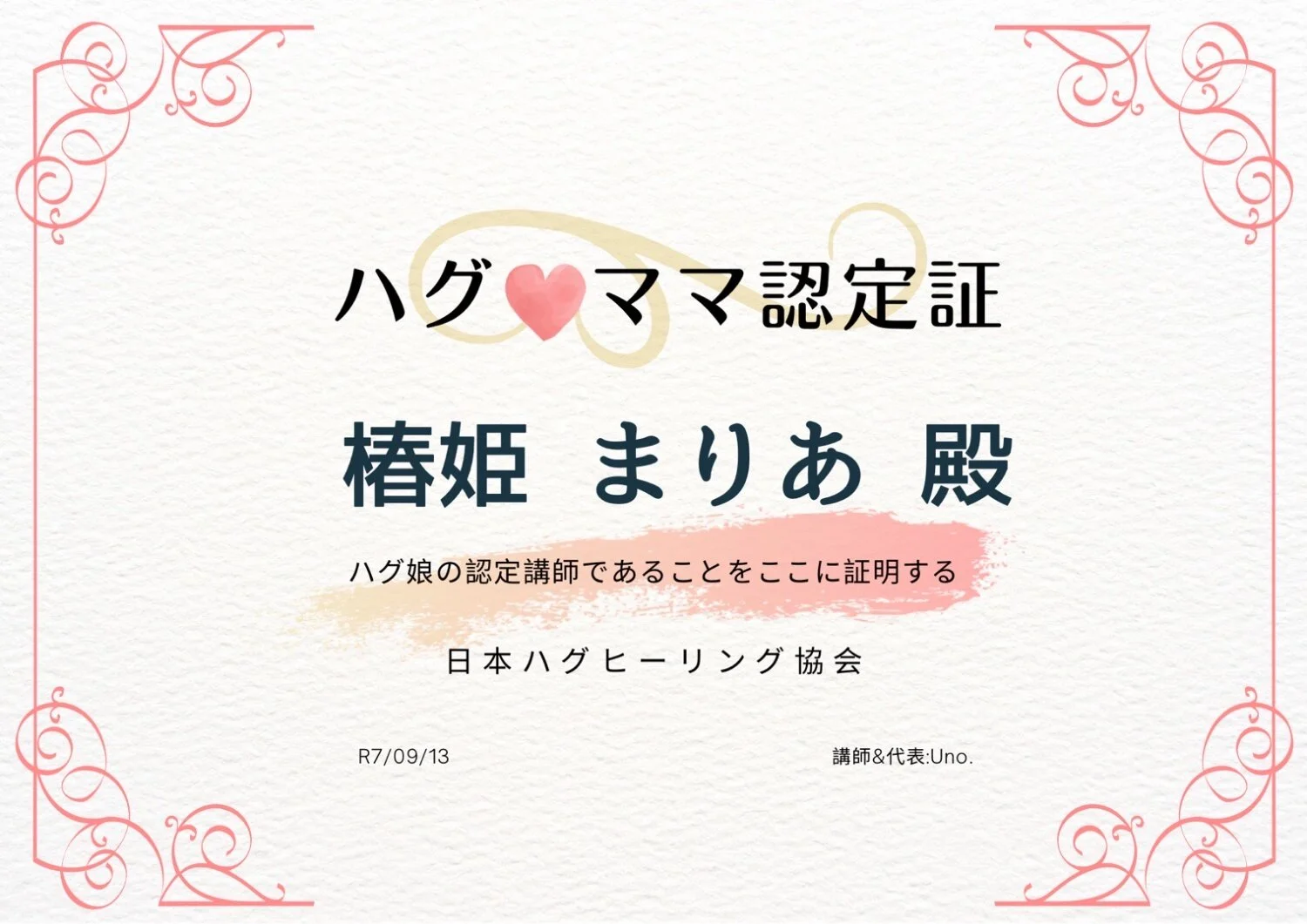 ハグヒーリング協会認定ハグヒーニスト👑