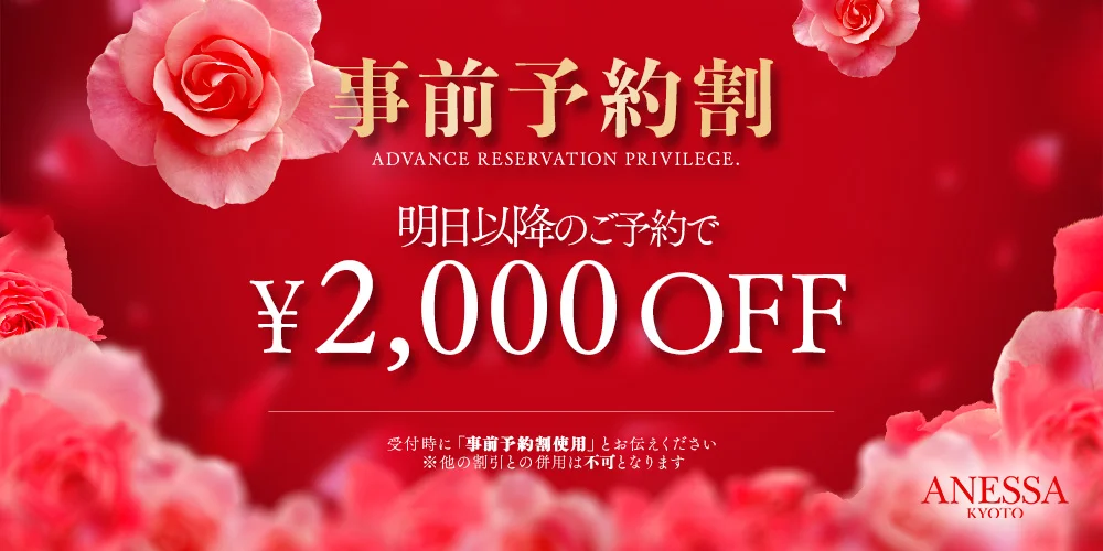 ~事前予約割~全コース2,000円オフ♪このクーポンで予約するANESSA京都では事前の予約がオススメ♪