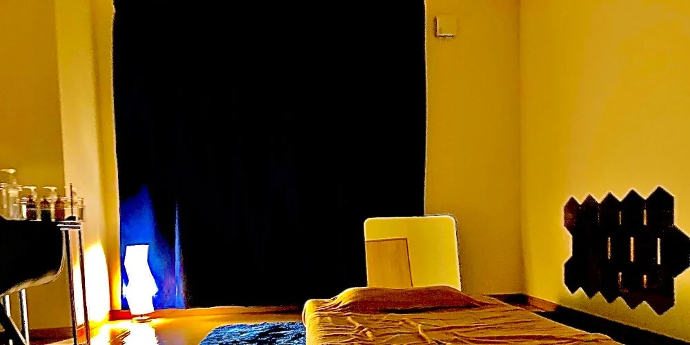 ベッドに横になると、まずはあぐら→バックハグ施術から施術が開始。