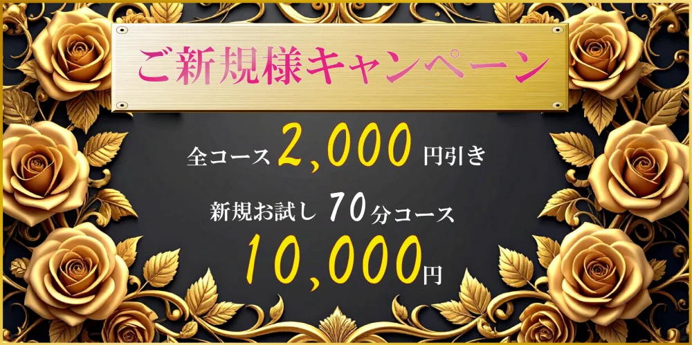 70分コースと90分コースが2,000円引き! 「今月金欠で…」「ショートコースで試してみたい」 『多くの方に利用していただきたいから』 ぜひこの機会をお見逃しなく!!