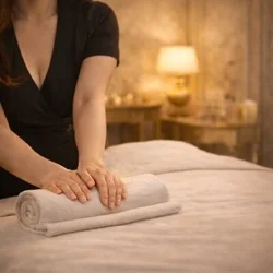 セラピストの手のぬくもりを利用してオイルを温め、優しく揉みほぐしを行います。
