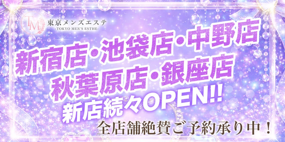 東京メンズエステは【新宿・池袋・中野・秋葉原・銀座】の5エリアで営業中。全店アクセス抜群&厳選セラピストによる極上の癒しを毎日ご提供します。ご予約受付中!